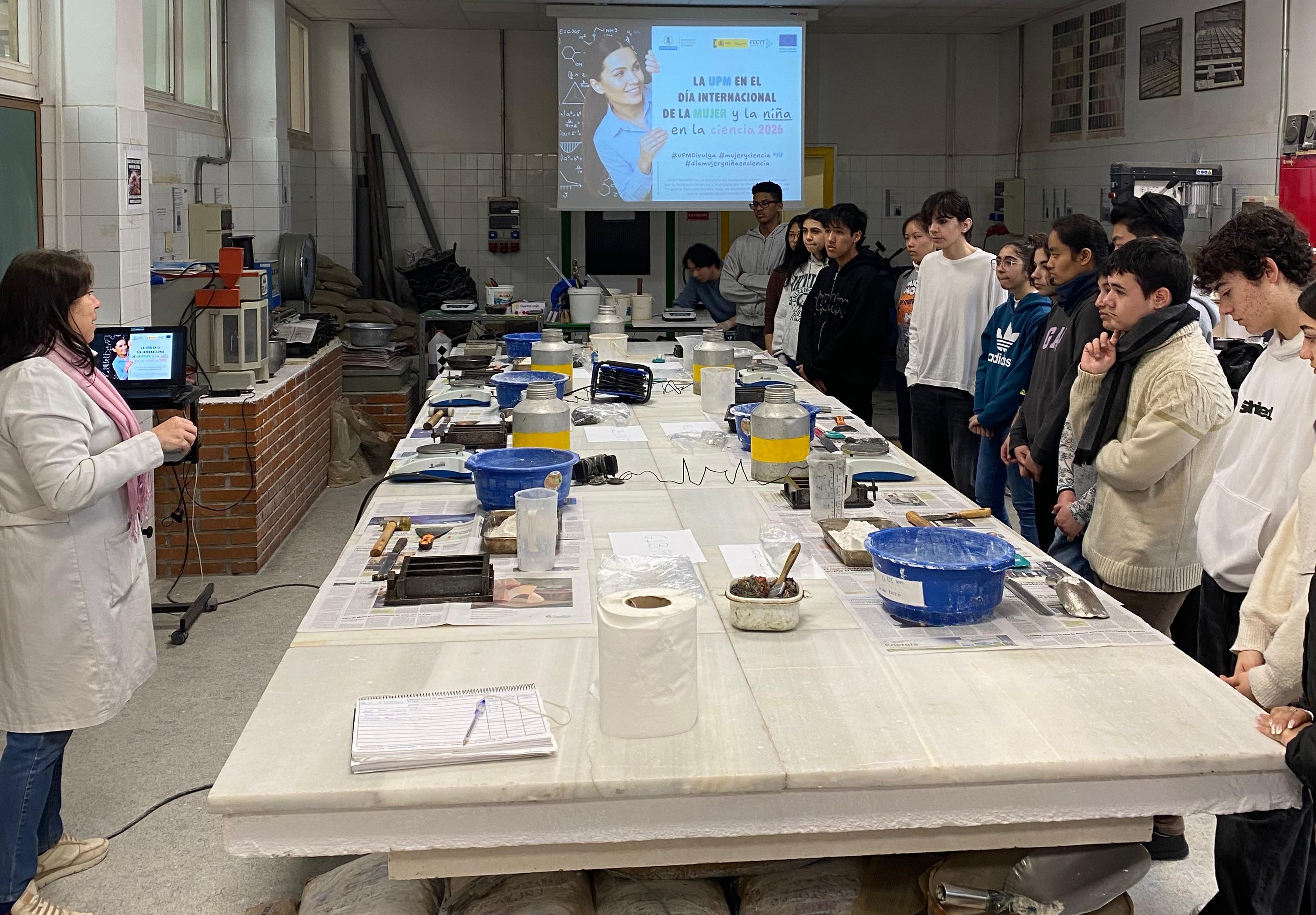 La segunda fase ha tenido lugar en el Laboratorio de Materiales de la ETS de Edificación, donde los mismos estudiantes asumieron un papel activo: fueron ellos mismos quienes prepararon probetas de mortero incorporando distintos plásticos reciclados y pudieron realizar los ensayos a rotura de las probetas que previamente habían sido llevadas a su centro educativo, observando de primera mano cómo se comportan estos materiales sometidos a distintas solicitaciones.