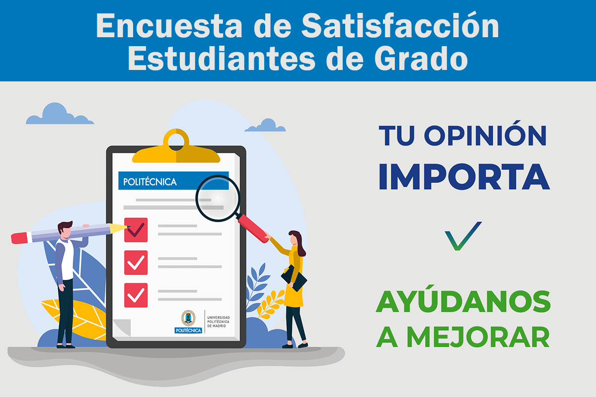 ✅ Para hacerlo de la mejor manera, necesitamos conocer tu grado de satisfacción con la UPM: docencia, orientación laboral, movilidad, servicios de apoyo… todo lo que conforma tu experiencia universitaria.